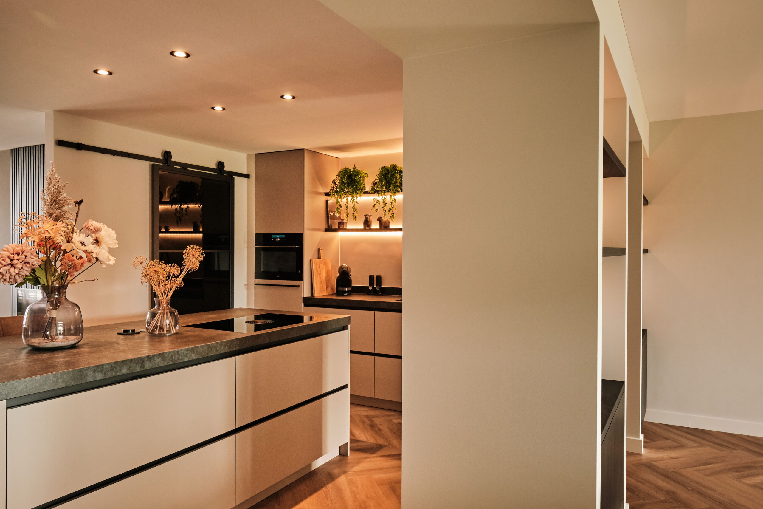 Moderne keuken met Dekton Taga en WoodUpp accenten