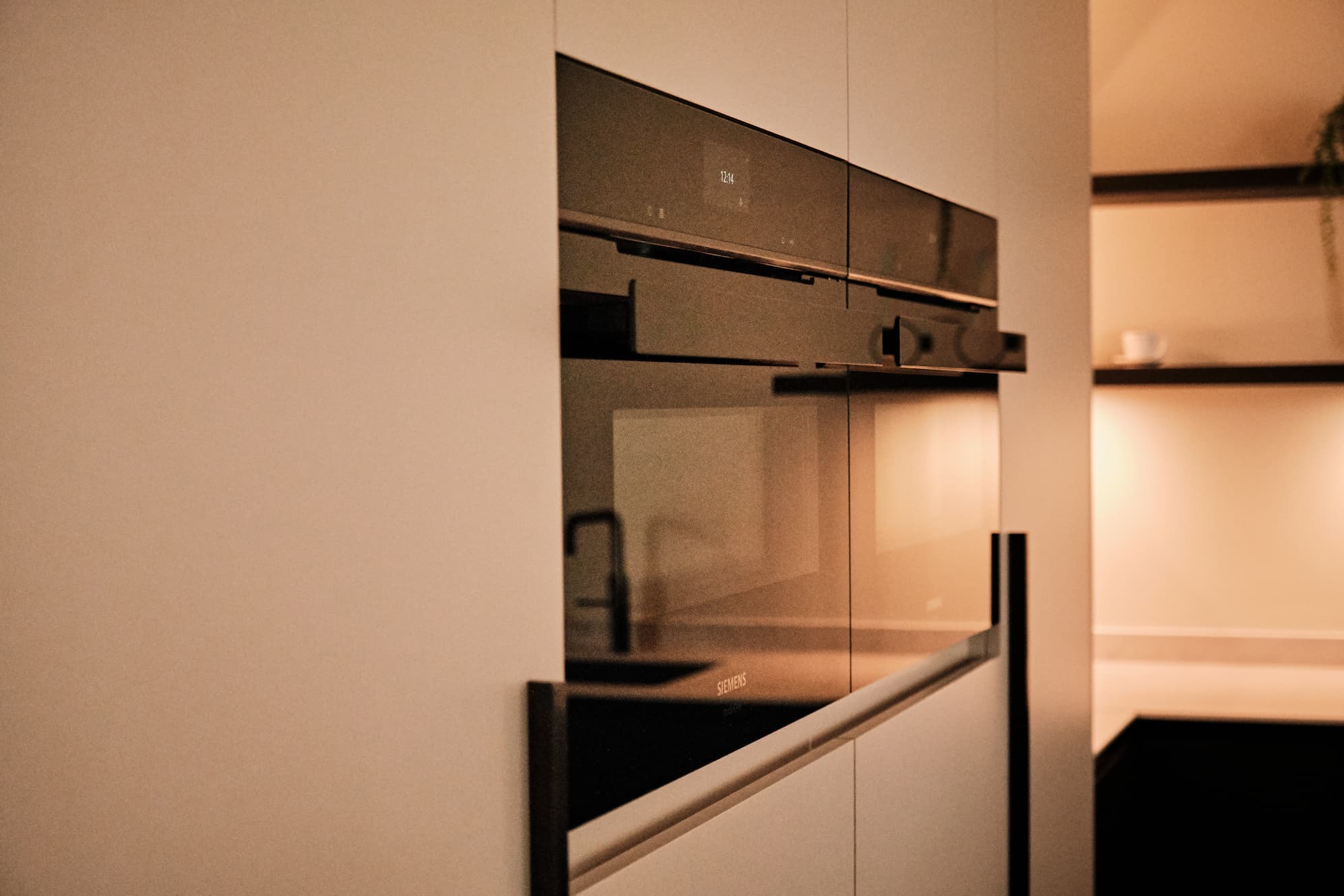 Deze keuken is compleet met apparatuur van Siemens (koelkast, ovens, vaatwasser, vriezer), een Bora Puru kookplaat, Quooker Fusion Square en een zwarte Franke Maris spoelbak. Alle ingrediënten voor jarenlang kookplezier.