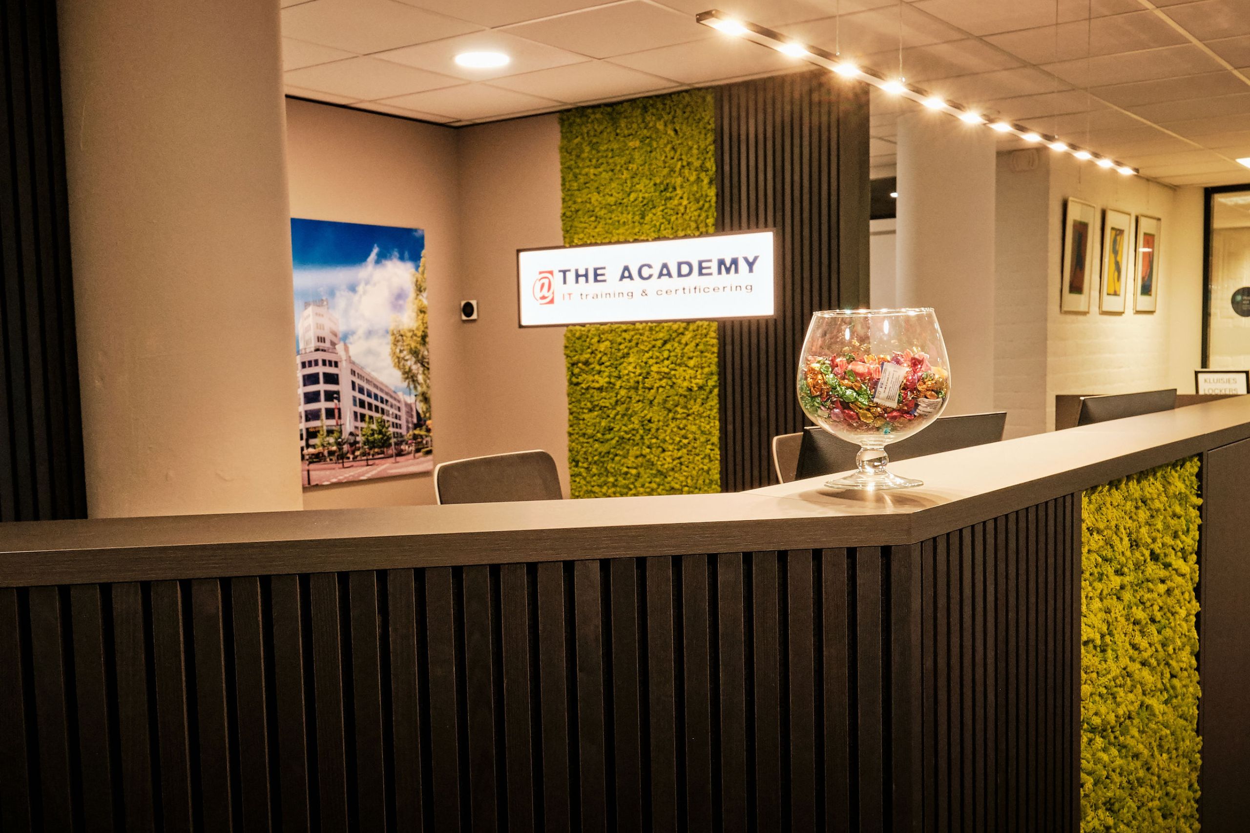Voor dit project hebben we een representatieve entree gerealiseerd waarbij een maatwerk receptiebalie en bijpassende kastenwand de hoofdrol spelen. Door het gebruik van warme houtstructuren en natuurlijke mospanelen hebben we een ruimte gecreëerd die professionaliteit uitstraalt en direct bij binnenkomst rust geeft.
